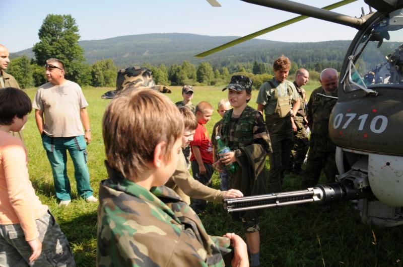 23. července v 9:15 pak nad Jeseníky zahřměly rotory bitevního vrtulníku MI-24, který pak přistál asi 200 metrů jižně od Relaxy. MI-24 je velký, dvoumotorový bitevní vrtulník, určený pro přímou podporu pozemních jednotek, ničení tanků a obrněných cílů, přepravě 8 osob nebo 1500 kg materiálu. Severoatlantická aliance mu přidělila kódové jméno "Hind". Základní výzbrojí vrtulníku je otočný čtyhlavňový rotační kulomet ráže 12,7 mm s kadencí 35 ran/sec, nebo dvojkanon ráže 23 mm. Další výzbroj a výstroj může být podvěšena na závěsech pod křídly. Na koncích křídel jsou lišty pro protitankové řízené střely. Jedná se o jeden z nejrychejších bitevních vrtulníků na světě, max. rychlost je 335 km/h, cestovní rychlost 270 km/h. Dolet s přídavnými nádržemi je 800m. Přímo na Relaxe pak stovka účastníků vyzkoušela s vojenskými lezeckými specialisty slaňování a lanovku, záchranáři představili terénní sanitku postavenou na Land Roveru Defender, a střelecké dovednosti táborníků pak prověřila laserová střelnice.