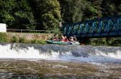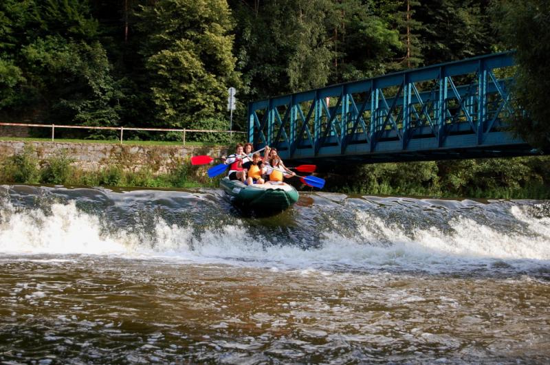 Začínali jsme na řece Dyji, asi 2 kilometry od Rakouských hranic. První část byla zajímavá, řeka tekla, i nějaký ten jez jsme na raftech sjeli. První zastávka byla v Podhradí nad Dyjí, s krátkým výšlapem na zříceninu kdysi velkého hradu Frejštejn. Pak rychle zpátky do raftů a jedeme dál...řeka se postupně začala rozšiřovat a rychlost toku klesala snad každým metrem. Jakmile se údolí rozevřelo, opřel se do raftů silný protivítr, takže dopádlovat do cílové stanice prvního dne - kempu Bítov, nás stálo značné úsilí. Tohle musíme do příště vychytat, řekli si Tom, Jirka a Lída, když viděli unavené účastníky vystupovat na břeh. Nicméně, pravdou je, že právě z vody si lze nejlépe prohlédnout mohutnou zříceninu hradu Cornštejn a také hrad Bítov, který shlíží ze skal na Vranovskou přehradu...ale i to patří k expedicím, a my už víme, jak to příště udělat tak, abychom nemuseli jet nudnou část po přehradě a přesto viděli její největší krásy.